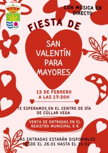 - El Centro de Día de Cúllar Vega celebra San Valentín con una fiesta para mayoresEl próximo 13 de febrero a las 17:30 horas, el Centro de Día de Cúllar Vega acogerá una entrañable Fiesta de San Valentín para mayores, una tarde pensada para compartir, bailar y disfrutar en buena compañía. El evento contará con música en directo, creando un ambiente festivo y acogedor para celebrar el amor,Leer más