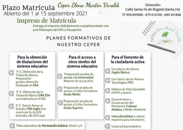 In Ceper Elena Martín Vivaldi‚ Formación 0 Plazo extraordinario de matriculación en el Centro de Educación Permanente Elena Martín Vivaldi (Escuela de Adultos)