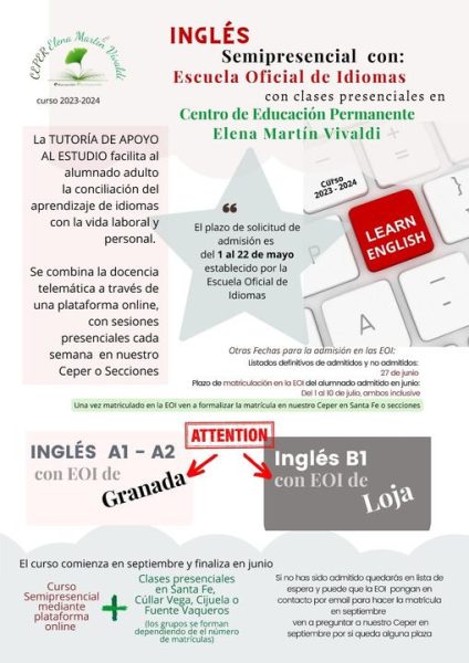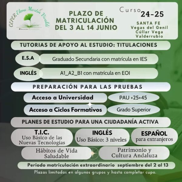In Ceper Elena Martín Vivaldi 0 Abierto Plazo Extraordinario de Matriculación Centro de Educación Permanente Elena Martín Vivaldi (Escuela de Adultos)