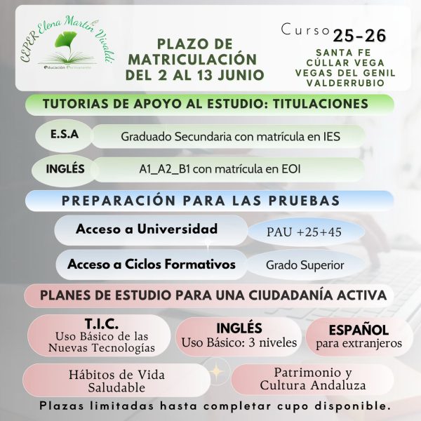 In Ceper Elena Martín Vivaldi 0 Abierto plazo de matriculación para el curso 2025-2026 del CEPER Elena Martín Vivaldi