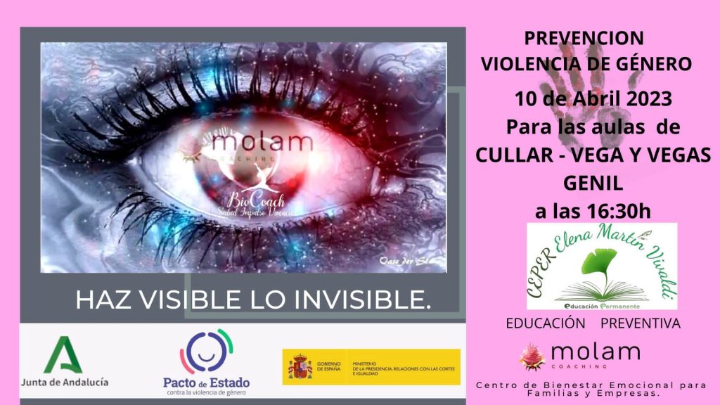 El 10 de abril tendrá lugar una charla de Prevención de la Violencia de Género para las aulas de Cúllar Vega y Vegas del Genil a las 16:30 h en el Aula 1 de la Casa de la Cultura de Cúllar Vega.