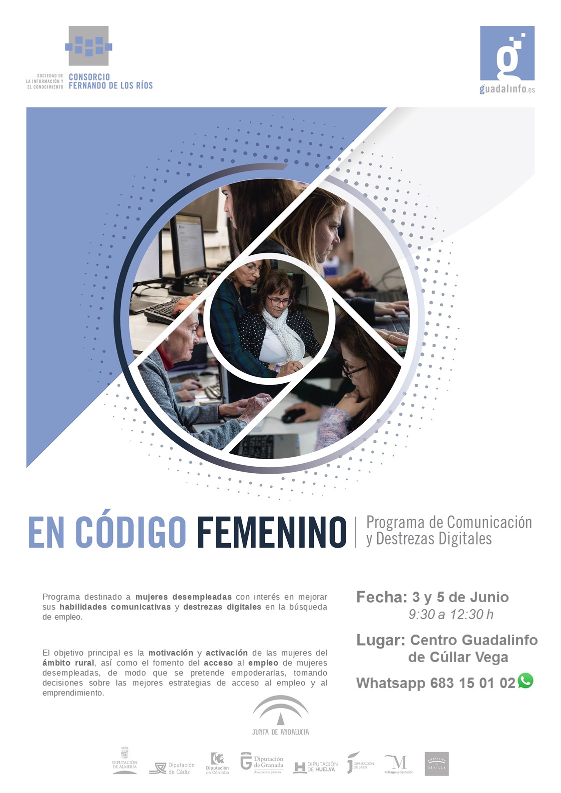 El Consorcio Fernando de los Ríos (entidad pública que gestiona la red de centros públicos de acceso a la sociedad de la información Guadalinfo, por encargo de la Junta de Andalucía y las 8 diputaciones provinciales) pone en marcha el programa para mejorar la empleabilidad de mujeres rurales “En Código Femenino”.
