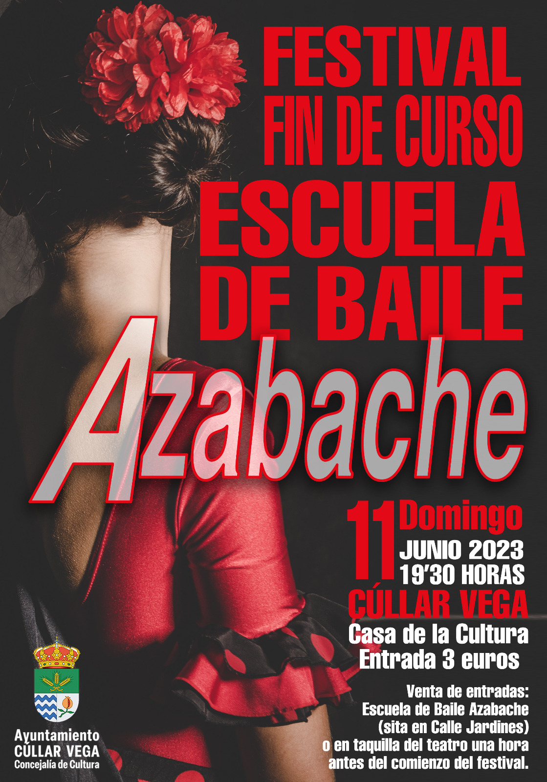 El domingo 11 de junio a las 19:30h, tendrá lugar el Festival fin de curso de la Escuela de Baile Azabache en la Casa de la Cultura de Cúllar Vea con entrada a 3 €.