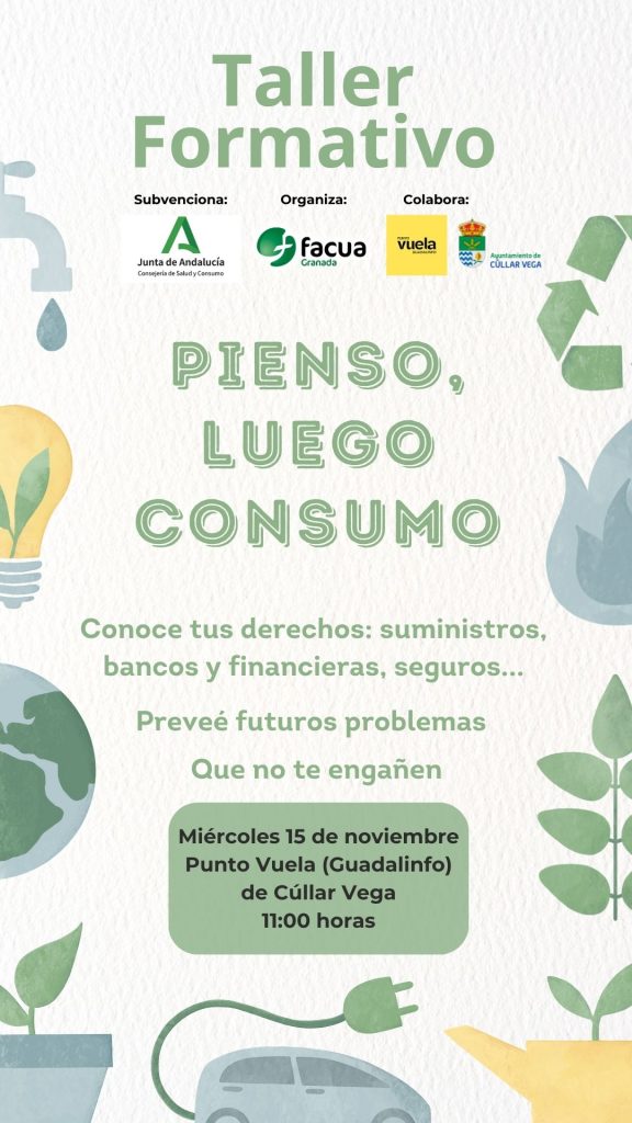 Subvencionado por la Consejería de Salud y Consumo de la Junta de Andalucía, organizado por FACUA Granada y en colaboración con el Ayuntamiento de Cúllar Vega