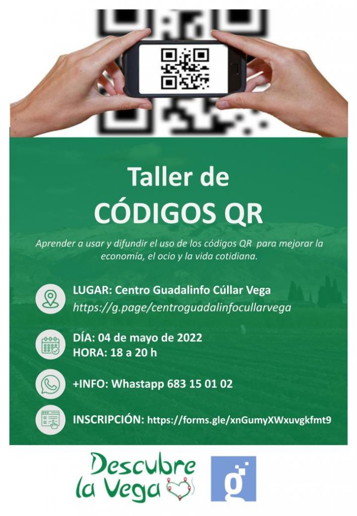 Dentro del proyecto #DescubrelaVega se va a realizar un taller donde aprenderemos a usar los códigos QR y sus conceptos fundamentales, descargaremos la aplicación de lectura en nuestros smartphones y realizaremos una Gymkana digital por el municipio de Cúllar Vega como parte práctica del taller.