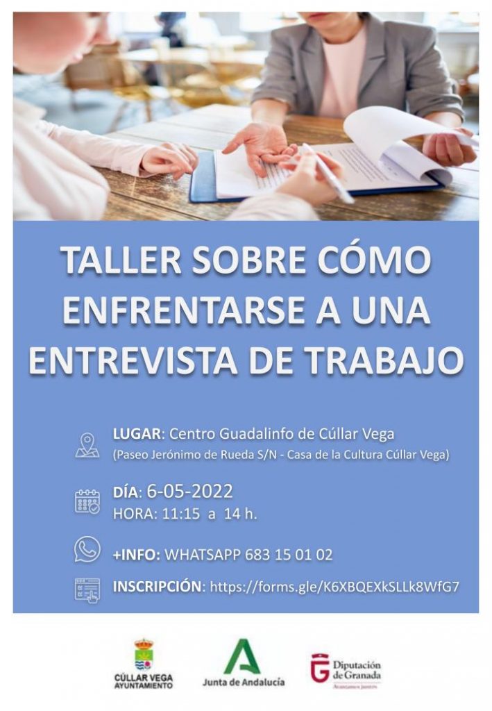 Con este Taller Presencial Gratuito organizado entre el Ayuntamiento de Cúllar Vega y el Centro Guadalinfo de Cúllar Vega e impartido por Lurdes Sánchez, aprenderéis a como enfrentaros a una entrevista para un puesto de trabajo dependiendo del tipo de empresa y de entrevistador. El taller consistirá en una parte teórica y una parte práctica con simulaciones de entrevistas.