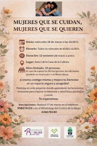 - Cúllar Vega pone en marcha el proyecto “Mujeres que se cuidan, mujeres que se quieren” para fomentar el bienestar y el autocuidadoEl próximo miércoles 18 de marzo iniciamos el Proyecto “MUJERES QUE SE CUIDAN, MUJERES QUE SE QUIEREN” de 12 semanas de duración. Las charlas puntuales son útiles, pero trabajar con más de una sesión genera aprendizajes y cambios más duraderos y a largo plazo. Desde el Centro Municipal de Información a la MujerLeer más