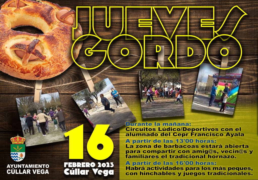 El próximo 16 de febrero disfrutaremos del tradicional #JUEVESGORDO en Cúllar Vega, una fiesta que se celebra cada año el jueves anterior al Miércoles de Ceniza, justo antes de los Carnavales.