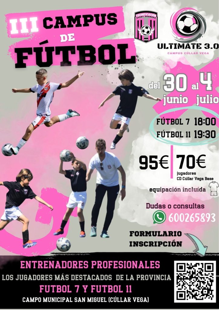 El campus se desarrollará del 30 de junio al 4 de julio, en horario de 18:00 horas para Fútbol 7 y 19:30 horas para Fútbol 11, en el Campo Municipal San Miguel de Cúllar Vega.
