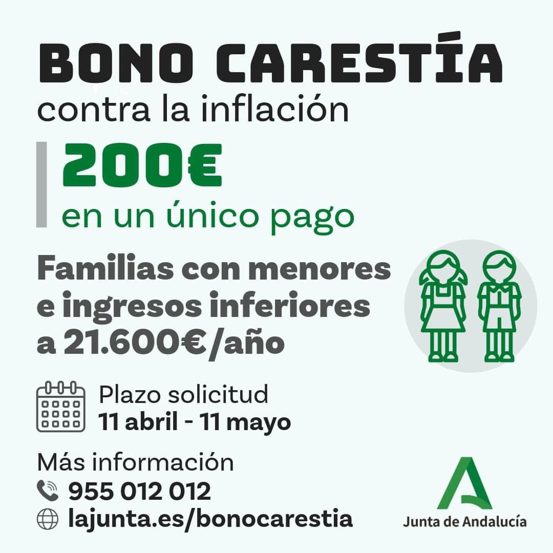 Más Información: Orden de 3 de abril de 2024, por la que se efectúa convocatoria del Bono Carestía y se aprueban las bases reguladoras para SU concesión.