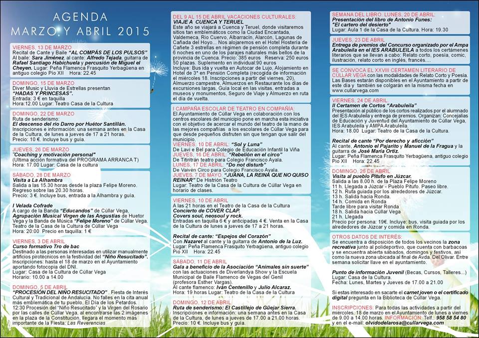 Agenda Cultural: consulta todas las actividades culturales programadas para los meses de marzo y abril