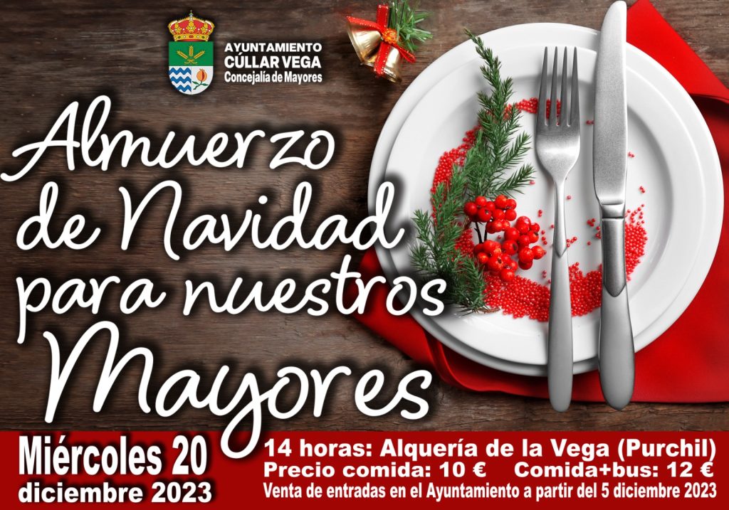 Disfruta en compañía del almuerzo navideño para nuestros mayores el 20 de diciembre a las 14:00 h. en los Alquería de la Vega (Purchil)