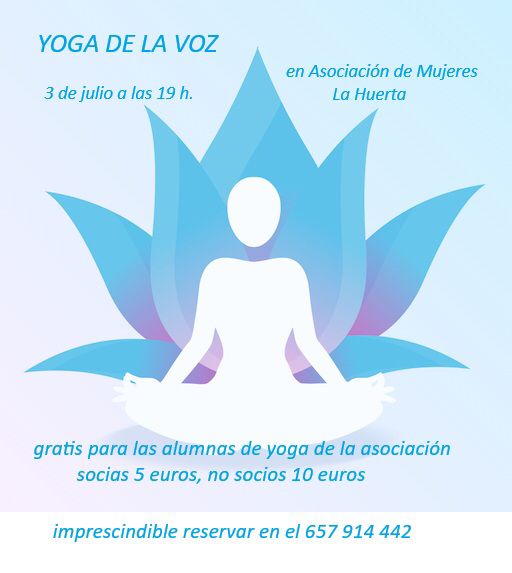 Os informamos que la Asociación de Mujeres «La Huerta» organiza dos talleres de yoga esta misma semana para todas las interesadas: – TALLER YOGA NIDRA: Martes 1 de julio a las 19.00 h. Lugar: Sede de la Asociación de Mujeres «La Huerta» (C/ San Isidro s/n). Gratis para alumnas de yoga de la Asociación. Resto de socias: 5€. No socias: