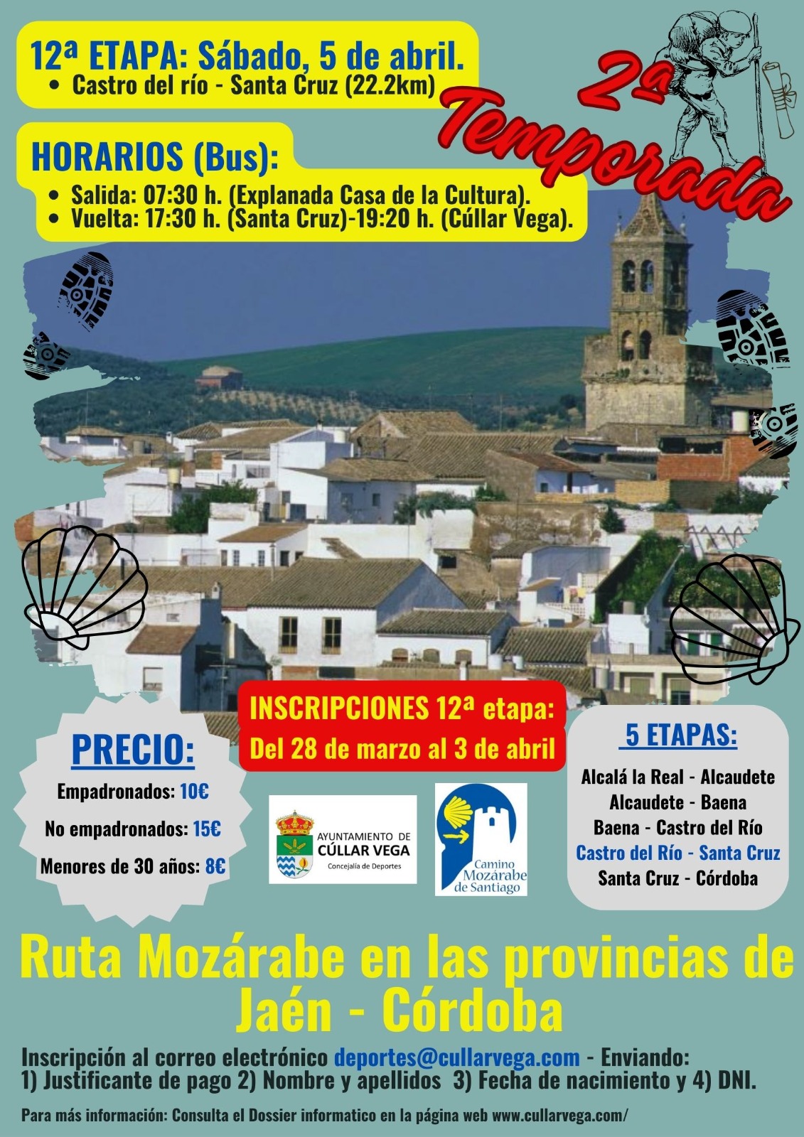 – Fecha: Sábado 5 de abril de 2025 – Horarios (bus): salida 07:30 h. (explanada Casa de la Cultura) | vuelta 17:30 h. (Santa Cruz) – 19:20 h. (Cúllar Vega) – Inscripciones: Las inscripciones se realizarán enviando justificante de pago, nombre completo, DNI, fecha de nacimiento y número de teléfono al correo deportes@cullarvega.com del 26 de marzo al 3 de abril