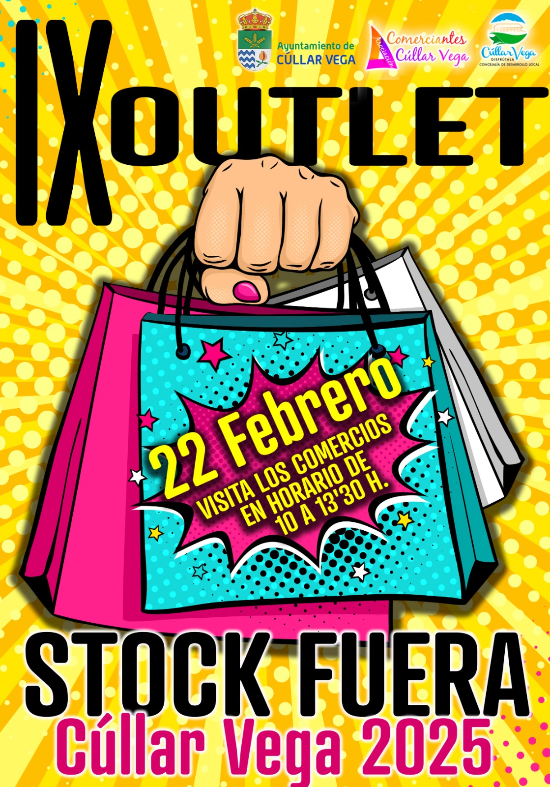 En la IX Feria Outlet Stock Fuera, que se celebrará de 10 a 13,30 horas, los clientes podrán adquirir productos de todo tipo a precios de coste El municipio de Cúllar Vega acogerá durante este fin de semana la IX Feria Outlet Stock Fuera, en la que los clientes podrán adquirir todo tipo de productos (textil, calzado, ropa deportiva, complementos,