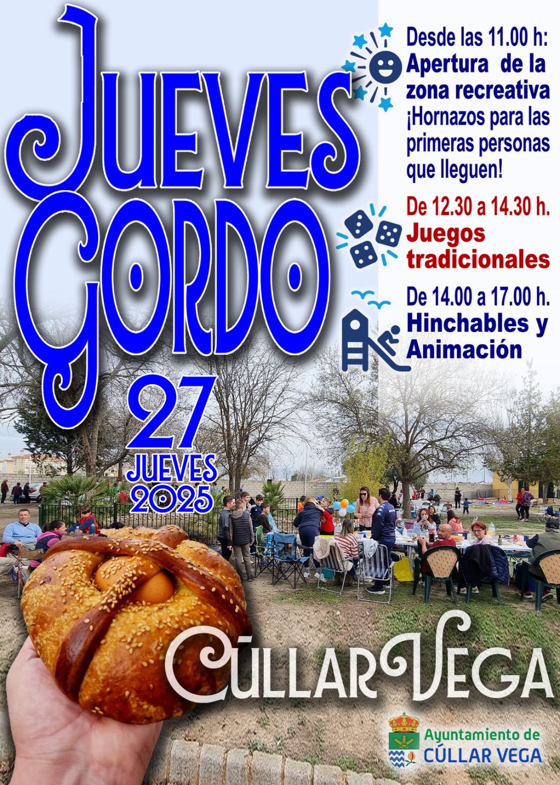 Ven a disfrutar de un día lleno de tradición, diversión y buen ambiente el próximo jueves 27 de febrero. Programación: – 11:00 h – Apertura de la zona recreativa y hornazos gratis para los primeros en llegar. – 12:30 – 14:30 h – Juegos tradicionales para todas las edades. – 14:00 – 17:00 h – Hinchables y animación para los