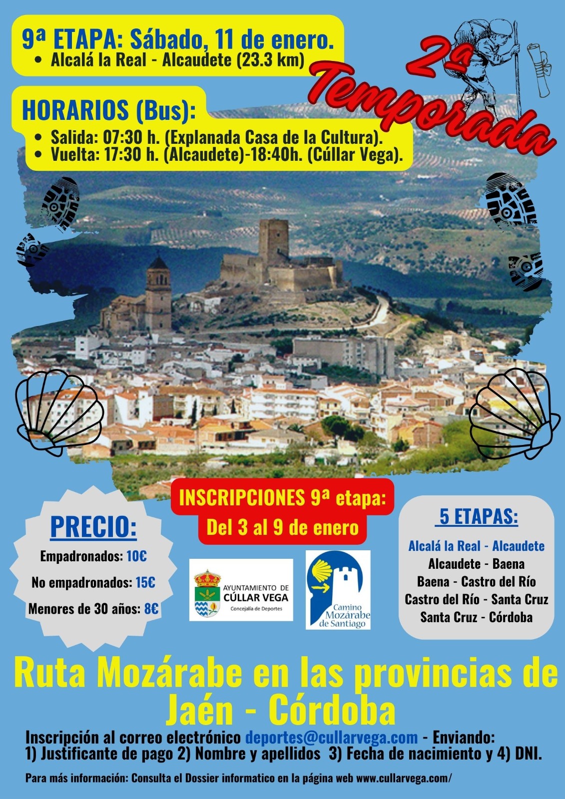 – Fecha: Sábado 11 de enero de 2025 – Horarios (bus): salida 07:30 h. (explanada Casa de la Cultura) | vuelta 17 h. (Alcaudete) – 18:40 h. (Cúllar Vega) – Inscripciones: Las inscripciones se realizarán enviando justificante de pago, nombre completo, DNI, fecha de nacimiento y número de teléfono al correo deportes@cullarvega.com del 3 al 9 de enero de 2025 –