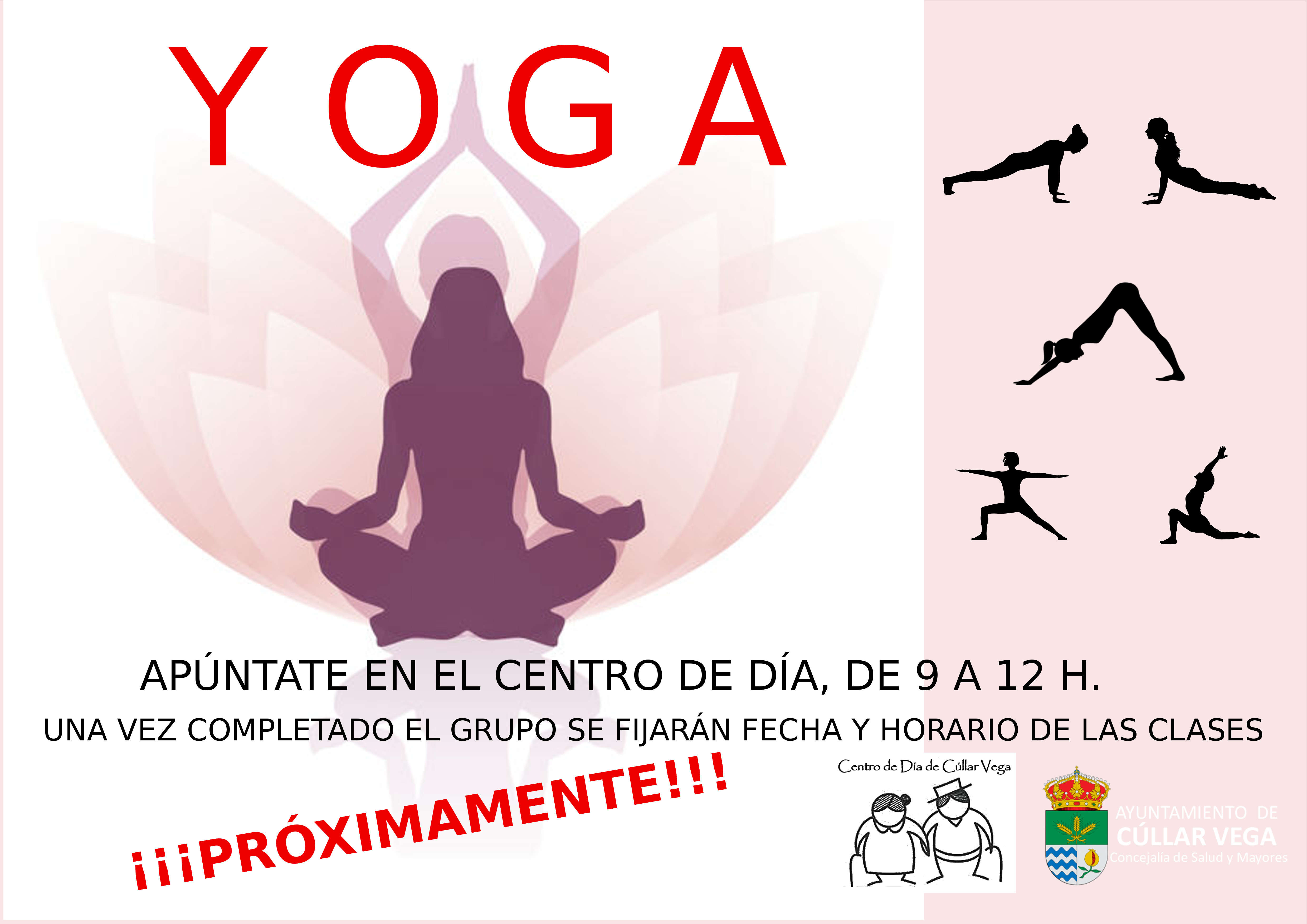 ¡PRÓXIMAMENTE EN EL CENTRO DE DÍA! ¿Estás interesad@ en hacer yoga ? Inscríbete en el Centro de Día los Lunes, Miércoles y Viernes de 9´00 a 12´00 horas Una vez completado el grupo se fijarán fecha y horario ¡Anímate!