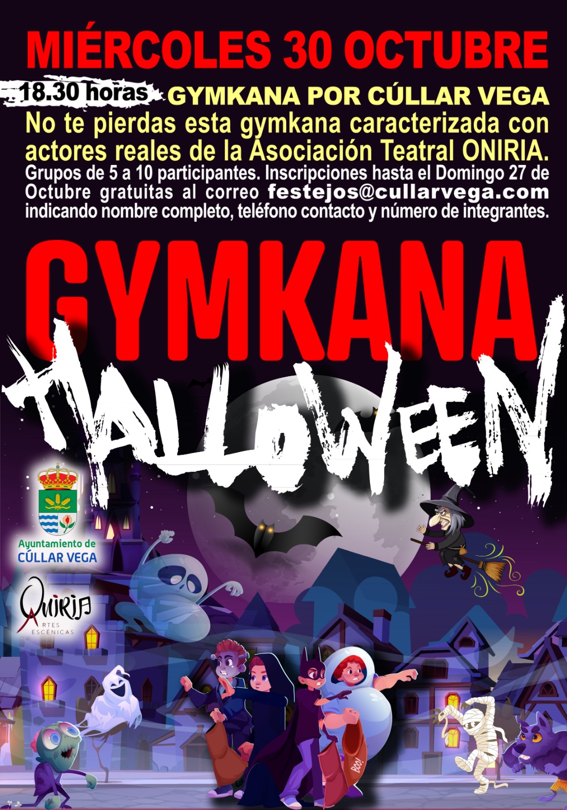 El miércoles 30 de octubre no te pierdas esta Gymkana caracterizada con actores reales de la Asociación Teatral ONIRIA con grupos de 5 a 10 participantes. Inscripciones gratuitas hasta el domingo 27 de octubre enviando un email a festejos@cullarvega.com indicando nombre completo, teléfono de contacto y número de participantes. Plazas Limitadas