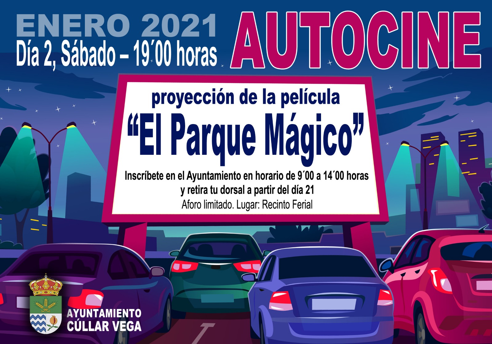 El próximo 2 de enero de 2021 a las 19:00 h. disfruta de la película «EL PARQUE MÁGICO» desde tu propio coche. Inscríbete en el Ayuntamiento de Cúllar Vega en horario de 09:00 a 14:00 h. AFORO LIMITADO. LUGAR: RECINTO FERIAL