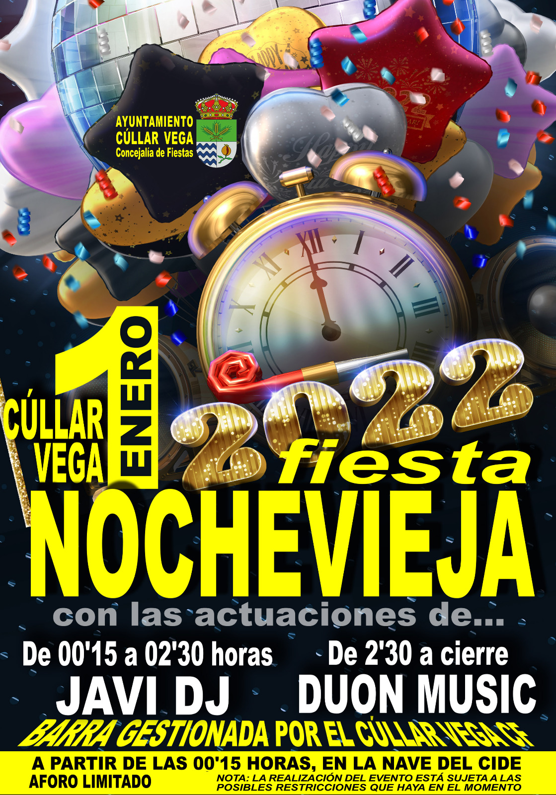 Recibe el año 2022 acompañado de familia, amigos/as y vecinos/as sin salir de tu pueblo con la FIESTA DE NOCHEVIEJA en #CúllarVega y con las actuaciones de JAVI DJ y DUON MUSIC. A partir de las 00:15 h en la nave del CIDE Cúllar Vega – Aforo limitado