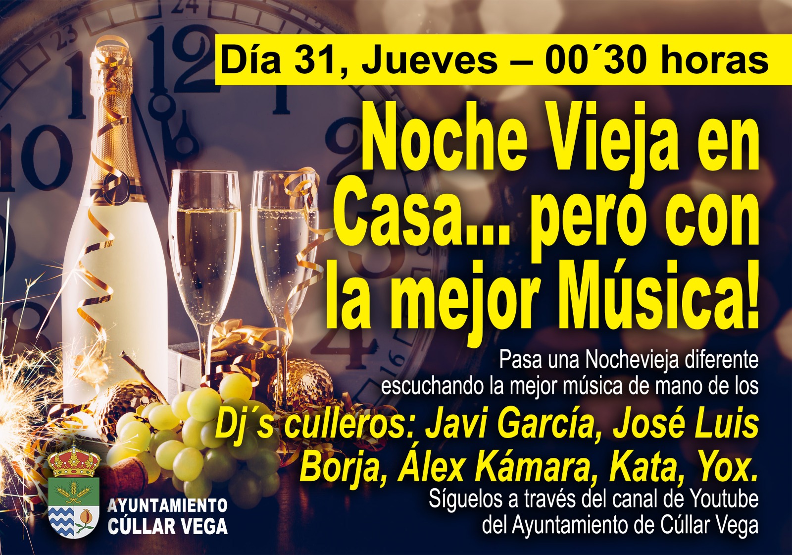 Pasa una NocheVieja diferente escuchando la mejor música de mano de los DJ’s culleros: Javi García, José Luis Borja, Álex Kámara, Kata y Yox. Puedes seguirlos a partir de las 00:30 h de la NocheVieja a través del cana de facebook de CullarVegaInforma 👉 https://www.facebook.com/cullarvegainforma