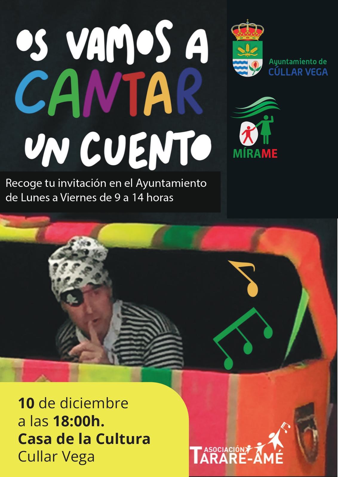 Nueva cita cultural para el mes de diciembre con la representación teatral programada para el próximo 10 de diciembre a las 18:00 horas en la Casa de la Cultura. El acceso será gratuito mediante invitación previa que podéis recoger en el Ayuntamiento de Cúllar Vega, de lunes a viernes en horario de 9:00 a 14:00 horas. Agrégalo al calendario de