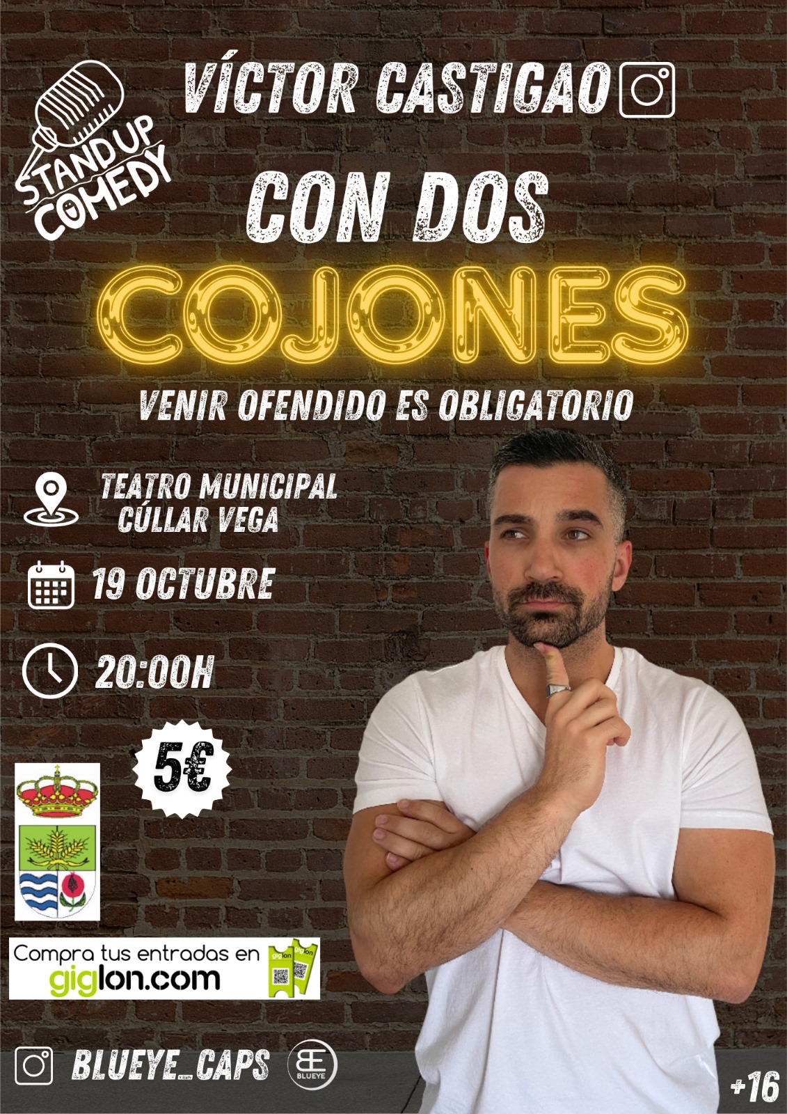 «Con dos cojones» es un monólogo para adultos que vienen ofendidos ya de casa y con ganas de reír tocando temas actuales desde un punto de vista fresco y con sorpresas. La energía de este espectáculo hará que pases por muchos estados de ánimo. Recomendado para mayores de 16 años – Día: sábado 19 de octubre – Hora: 20:00 h