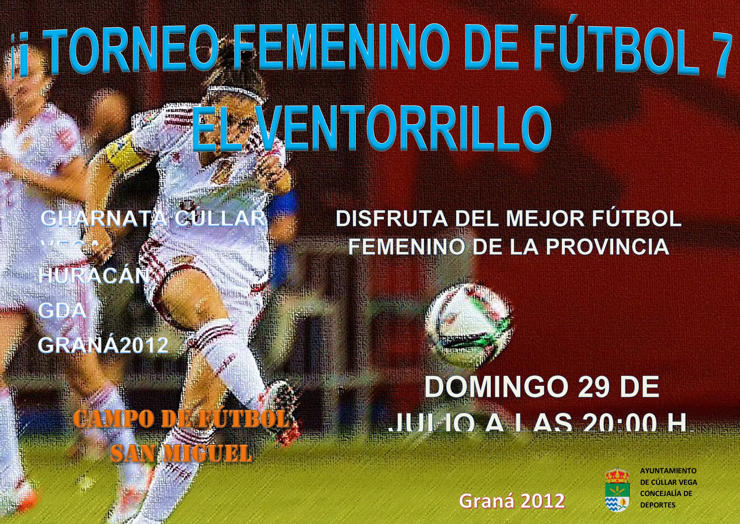 Organizado por las concejalías de Fiestas y Deportes del Ayuntamiento de Cúllar Vega, se celebró en el Campo de Fútbol San Miguel, y en él participaron medio centenar de mujeres de cuatro clubes femeninos Medio centenar de mujeres de entre 16 y 40 años han participado en el II Torneo Femenino de Fútbol 7 de El Ventorrillo, organizado por las