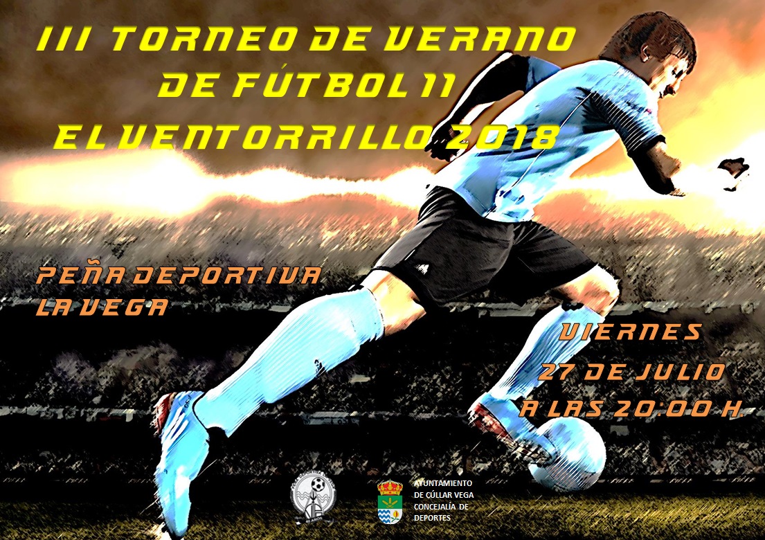 Desde las concejalías de Fiestas y Deportes se informa: El próximo viernes, 27 de julio, tendrá lugar en el Polideportivo Municipal San Miguel el – III Torneo de verano de Fútbol 11 «El Ventorrillo 2018»-. Hora: 20:00h ¡¡Os esperamos!!