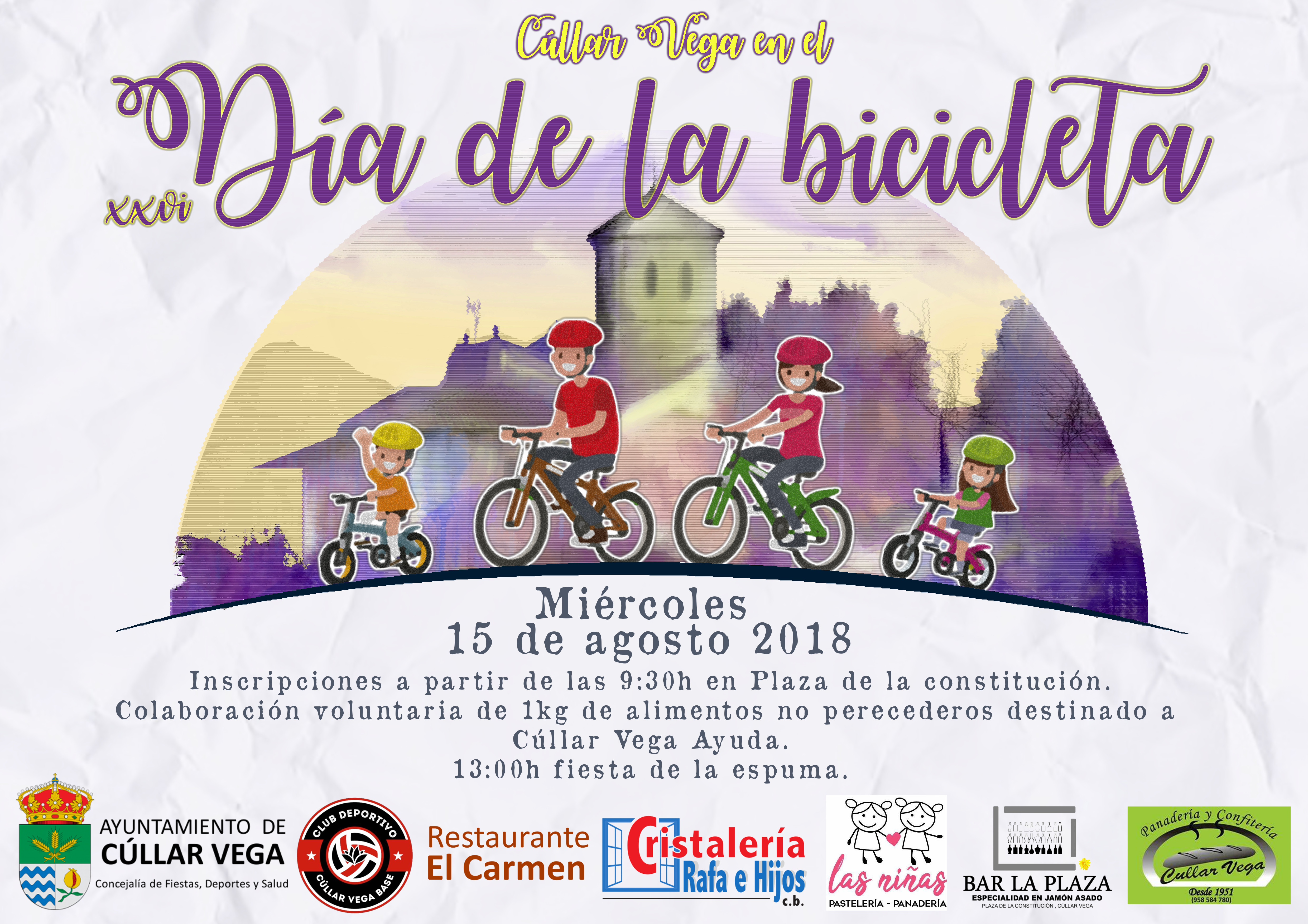 15 de Agosto: Vigésimo Sexta Edición de la Jornada Cicloturista por excelencia de Cúllar Vega, como todos los años participación abierta a todas las edades, con un recorrido ideal para hacer la Ruta en familia por el entorno de Cúllar Vega. RUTA: Cúllar Vega – Ambroz – Purchil – Belicena – El Ventorrillo – Cúllar Vega Una vez más