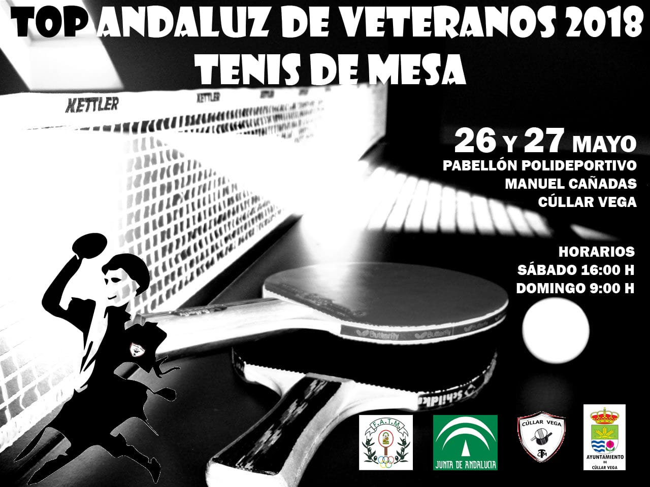 Desde la Concejalía de Deportes se informa: Durante el fin de semana del 26 al 27 de Mayo, tendremos el placer de albergar el Top Andaluz de Veteranos de Tenis de Mesa en el Pabellón Municipal Maestro Manuel Cañadas. El evento está organizado conjuntamente por la Federación Andaluza de Tenis de Mesa, la Junta de Andalucía y cuenta también con