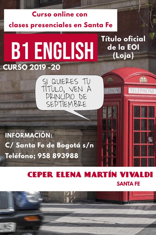 Sácate el B1 de inglés con Tutoría de Apoyo al Estudio con la EOI de Loja pero con las clases presenciales en Santa Fe en el CEPER Elena Martín Vivaldi. Para más información, pásate por la Casa de la Cultura de Cúllar Vega por las mañanas de 9´00 a 14´00 horas y por las tardes los lunes, martes, jueves y