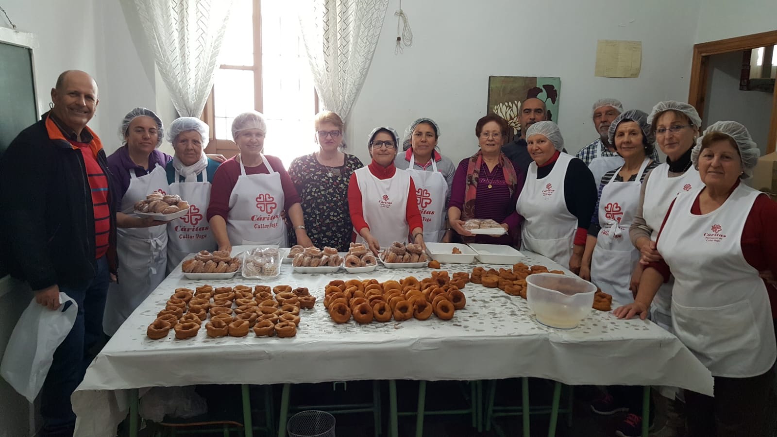 Los integrantes de Cáritas Cúllar Vega venden dulces típicos antes de Semana Santa para ayudar a los culleros con menos recursos Un grupo de vecinos y vecinas de todas las edades del municipio granadino de Cúllar Vega, pertenecientes a Cáritas, ayudará a las familias más necesitadas del pueblo vendiendo roscos, pestiños y galletas de coco elaboradas por ellos mismos. Todo