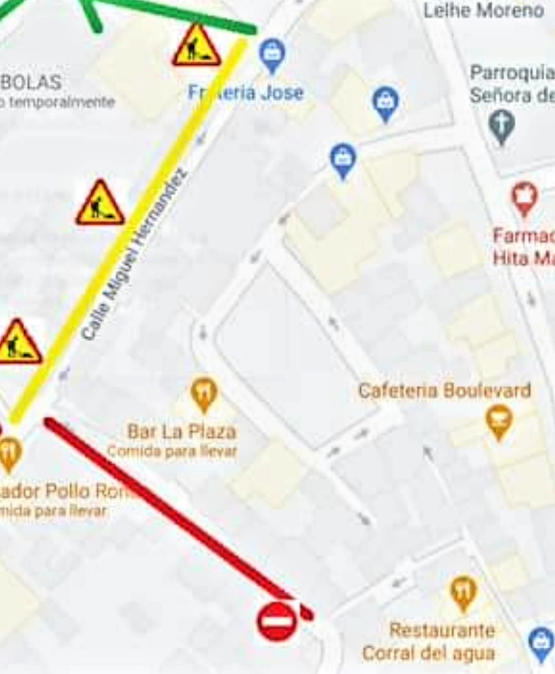 ◾ Desde la tarde del lunes 22 de marzo y durante todo el día de mañana (días 22 y 23 de Marzo) se cortará el Tráfico rodado de esta Vía debido a trabajos en C/ Miguel Hernández. ◾A Calle del Horno solo podrán acceder Residentes, se recomienda entrar en Calle San Miguel sólo a residentes de la zona (Calles San