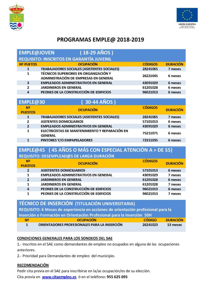 Desde la Concejalía de Empleo y Desarrollo Local del Ayuntamiento de Cúllar Vega, les informamos de los códigos de ocupación correspondientes a los programas emple@joven, emple@30 y emple@45 del Ayuntamiento de Cúllar Vega.