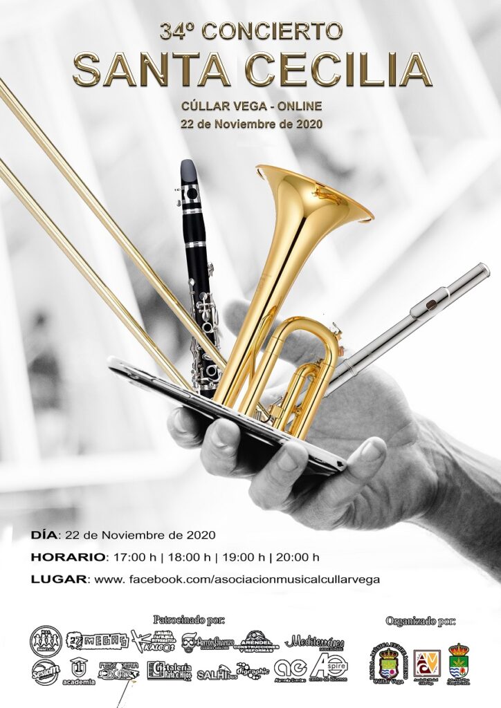 La Asociación Musical de Cúllar Vega ha organizado un Homenaje Especial a Santa Cecilia, patrona de la música y que se celebra cada 22 de noviembre, consistente en la emisión de 4 pequeños conciertos protagonizados por profesorado de la Asociación, agrupaciones de instrumentos y alumnos/as de canto.