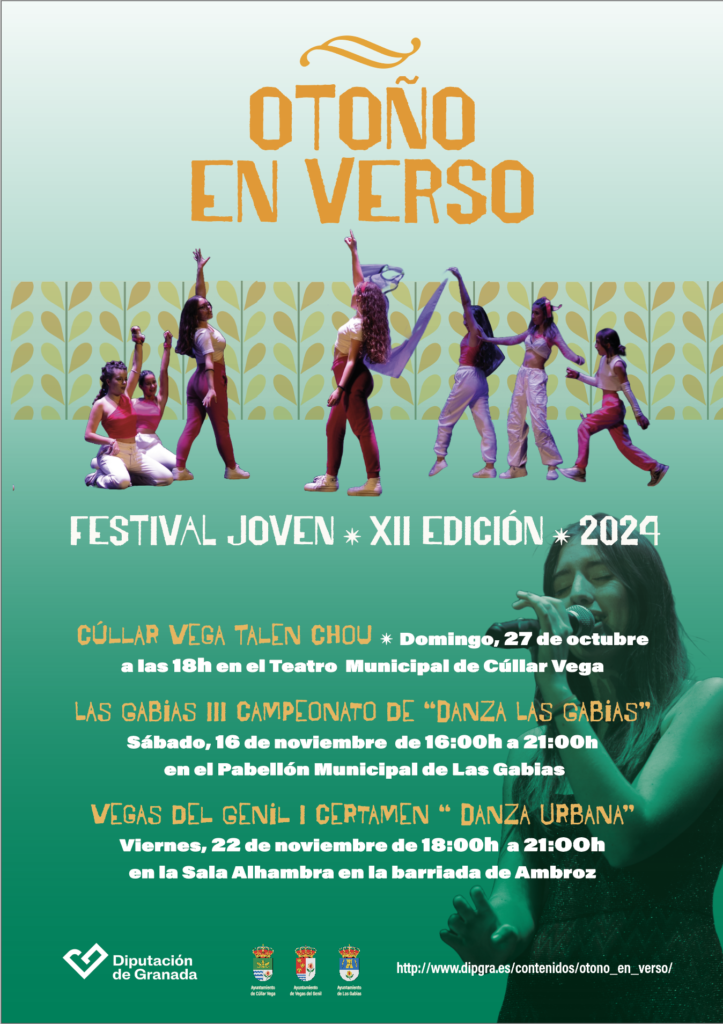 La Delegación de Centros Sociales, Mayores y Juventud de la Diputación de Granada y el Ayuntamiento de Cúllar Vega convocan el Concurso “TALEN CHOU – jóvenes promesas del espectáculo” dentro de la programación del Festival Joven “Otoño en Verso 2024”, con arreglo a las siguientes BASES: