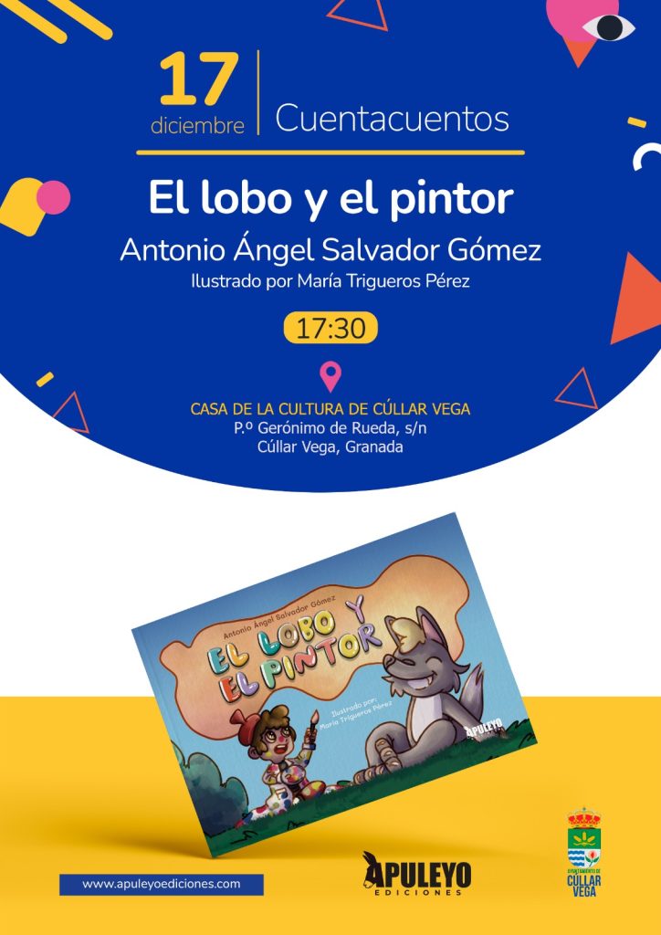 El próximo 17 de diciembre, la Casa de la Cultura de Cúllar Vega será escenario de una cita muy especial con la literatura infantil. A las 17:30 horas, el escritor Antonio Ángel Salvador Gómez presentará su obra “El lobo y el pintor”, ilustrada por María Trigueros Pérez, en un cuentacuentos lleno de color, imaginación y valores.