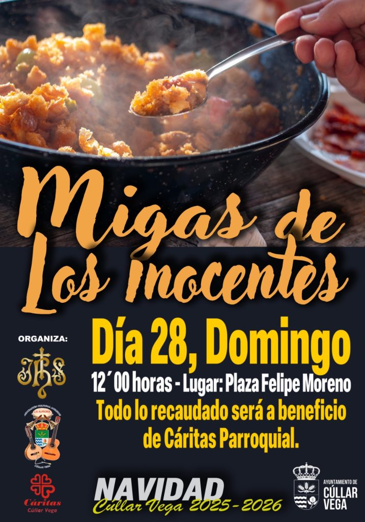 Cúllar Vega vivirá el próximo domingo 28 de diciembre una de sus citas más tradicionales de la Navidad con la celebración de las Migas de los Inocentes, un encuentro popular que combina gastronomía, convivencia y solidaridad.