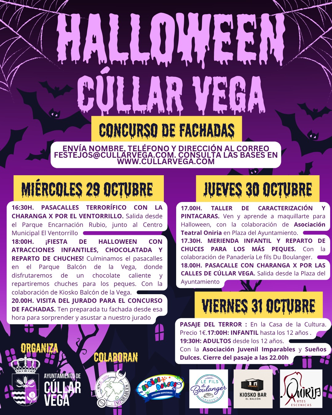 El municipio de Cúllar Vega acogerá durante los próximos días una completa programación organizada por el Ayuntamiento para celebrar Halloween, con actividades dirigidas a todas las edades.