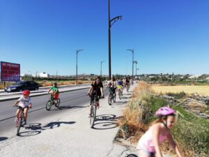 El segundo grupo estuvo formado por estudiantes de tercero, cuarto, quinto y sexto de Primaria, que realizaron una ruta por el pueblo, montados en sus bicicletas, acompañados por padres y madres y agentes de la Policía Local y Protección Civil.