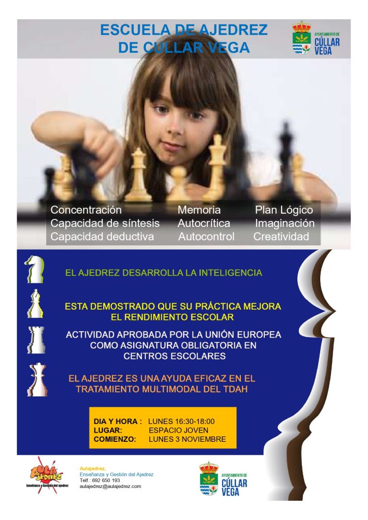 El Ayuntamiento abre las inscripciones para la nueva Escuela de Ajedrez de Cúllar Vega, iniciativa que busca fomentar el pensamiento lógico, la concentración y la creatividad entre los niños y jóvenes del municipio.
