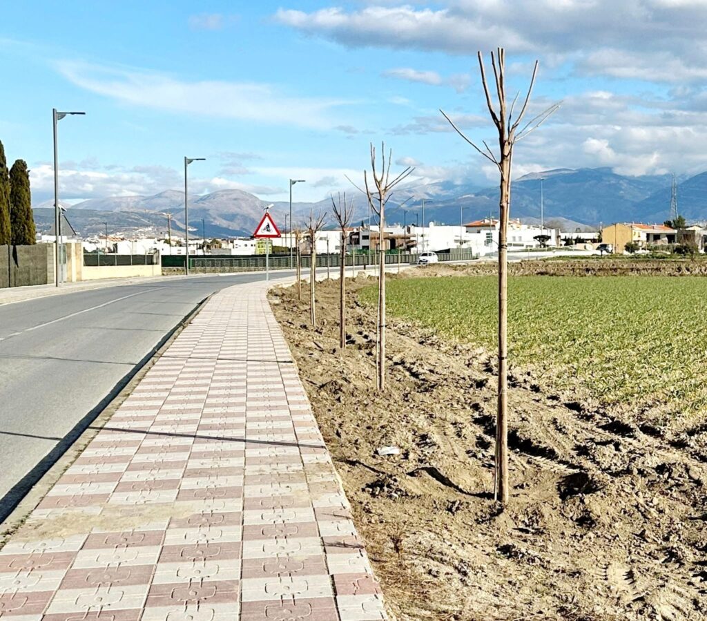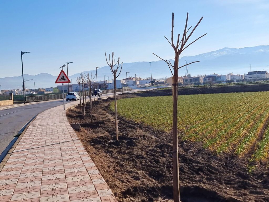 Esta semana, a través de la concejalía de Obras y Servicios, se han sembrado 24 ejemplares de moreras fruitless (una variedad sin fruto) en esta vía que conecta el núcleo central de Cúllar Vega y la urbanización El Ventorrillo.