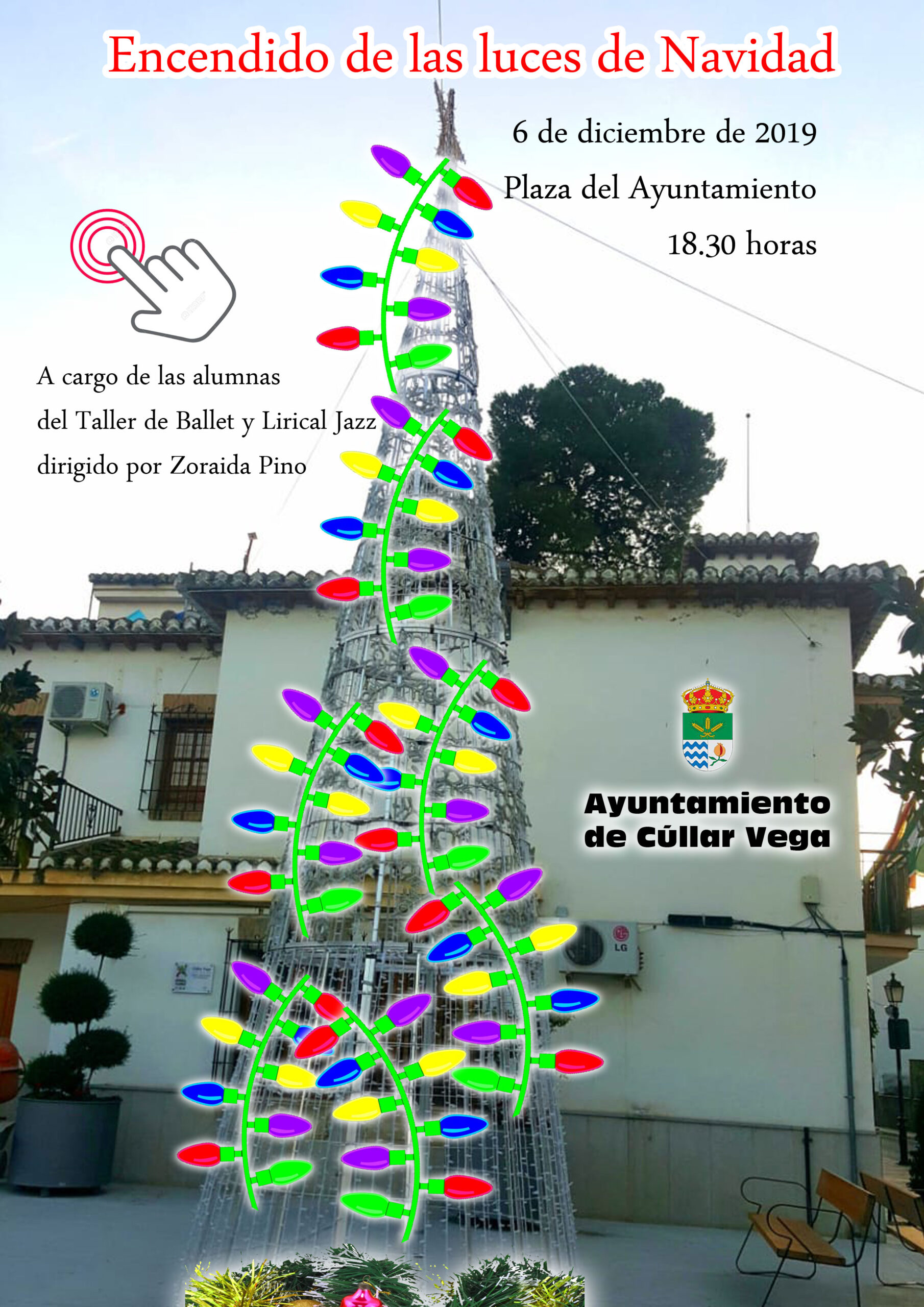 El viernes 6 de diciembre tendrá lugar el Encendido de las Luces de Navidad en Cúllar Vega a cargo de las alumnas del Taller de Ballet y Lirical Jazz dirigido por Zoraida Pino.