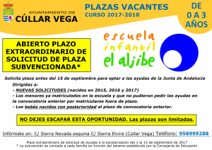 Abierto plazo extraordinario para solicitar plaza de Escuela Infantil (o-3 años) subvencionada por la Junta de Andalucia.