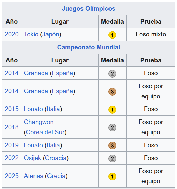 Participó en cuatro Juegos Olímpicos de Verano, obteniendo una medalla de oro en Tokio 2020, en la prueba de foso mixto (junto con Alberto Fernández), y en categoría individual el cuarto lugar en Río de Janeiro 2016, el quinto en Londres 2012[ y otro quinto lugar en París 2024.