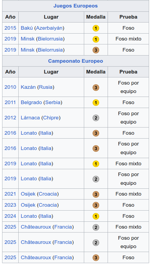 Ganó siete medallas en el Campeonato Mundial de Tiro entre los años 2014 y 2025, y trece medallas en el Campeonato Europeo de Tiro entre los años 2010 y 2025.