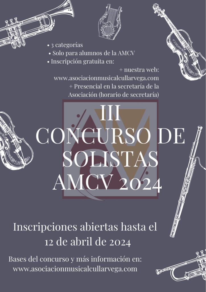Más información en https://www.asociacionmusicalcullarvega.es/iii-concurso-de-solistas-de-la-amcv-bases-y-requisitos/