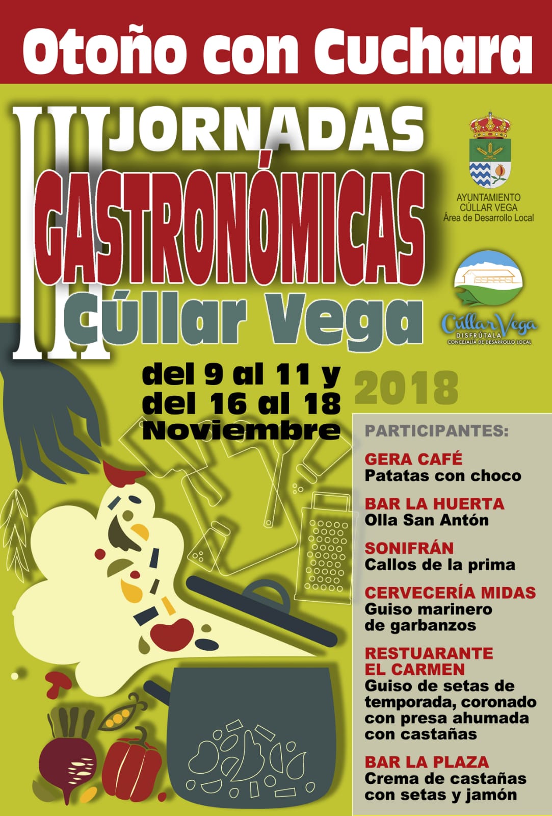 Disfruta de la entrada del Otoño en los bares de Cúllar Vega en las III Jornadas Gastronómicas que se celebran los dos próximos fines de semana y en las que podrás disfrutar de los mejores platos de cuchara. No te quedes sin probarlos!!!